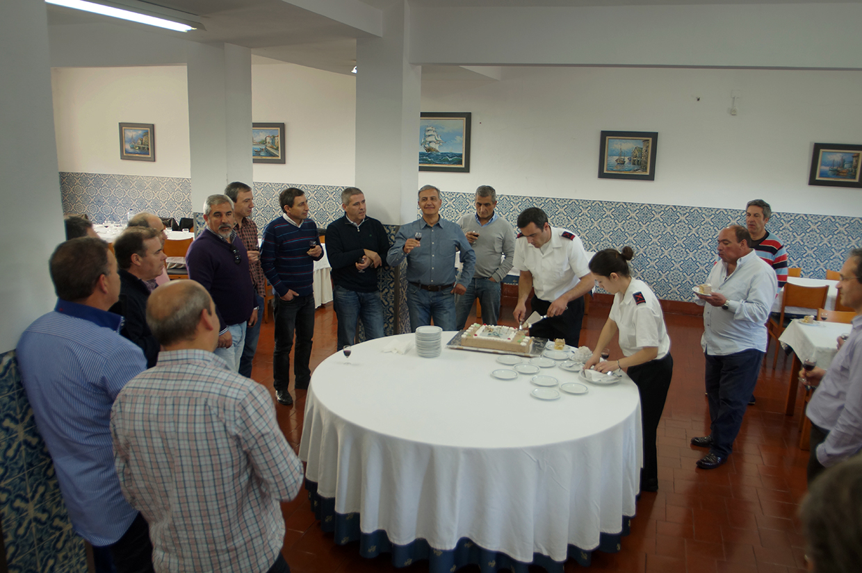 Seguidamente, foi servido um excelente almoço na Messe de Sargentos da B.N.L. Durante o convívio, foi estabelecido contacto via Skype com o Filho da Escola Carvalho que se encontrava no Brasil.